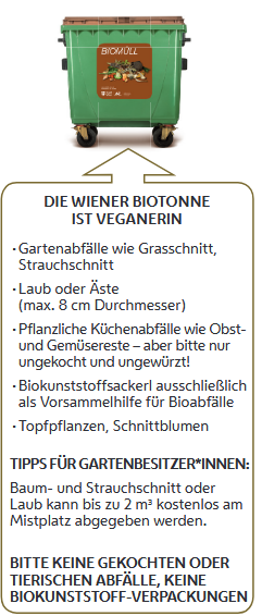 es darf keine Erde über die Biotonnen entsorgt werden, Deckel der Biotonnen muss schliessbar sein (max. 45° geöffnet)
